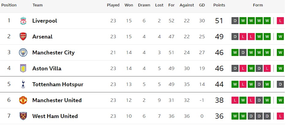 23/24 EPL GW23の結果