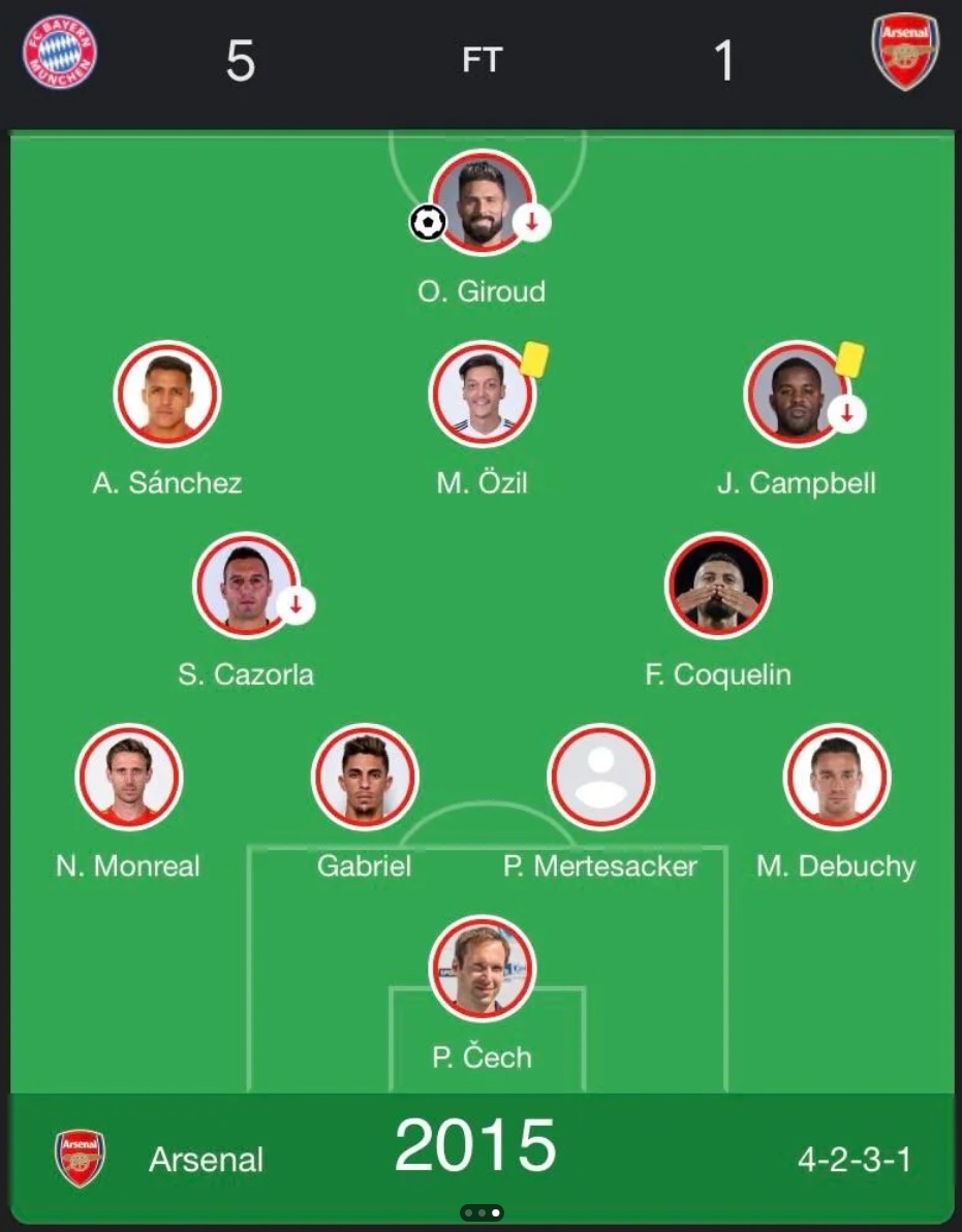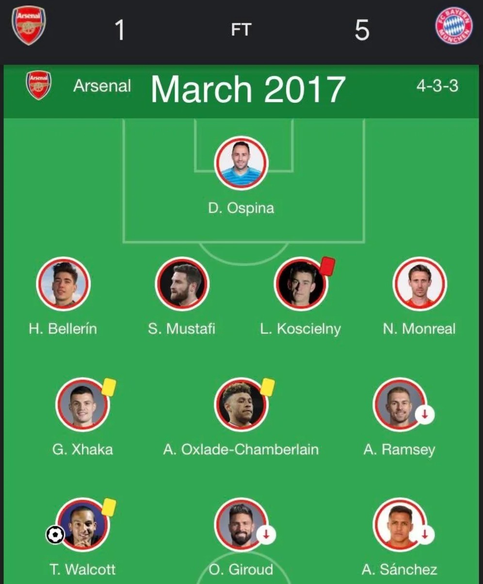 redditに、3試合連続で5-1で敗けたときのアーセナルのラインナップがシェアされていた。