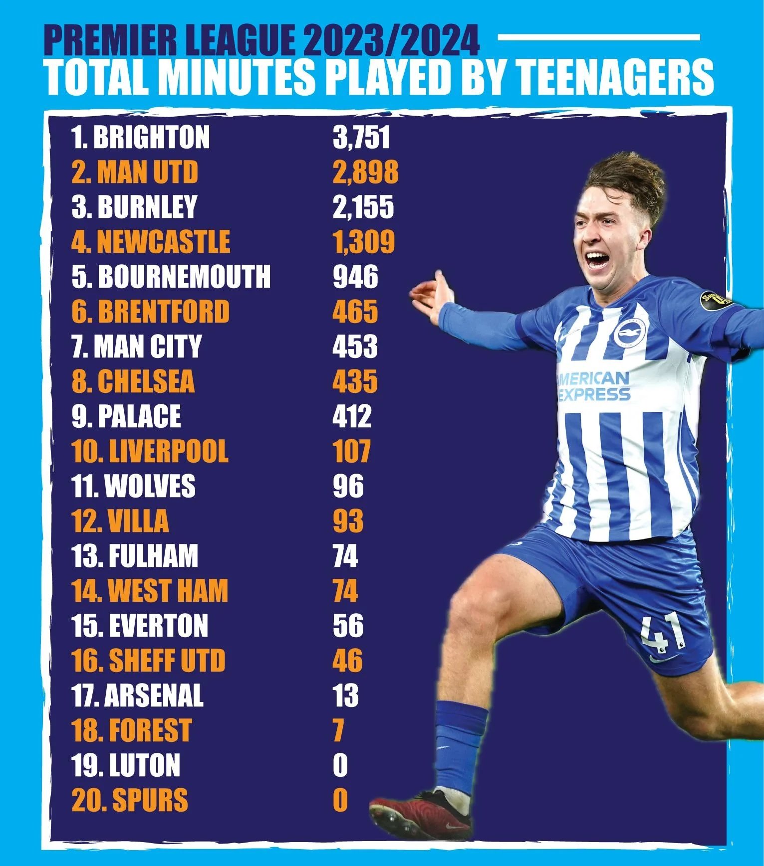 若い選手にチャンスを与えることについては、去年から今年くらい、アルテタは「リーグでもっとも若いスクワッド」としばしば誇らしげに云うのだが(実際はリーグで2位だか3位?)、ティーンエイジャーのプレイタイムランキングでは驚くほど下にいる。17位。
