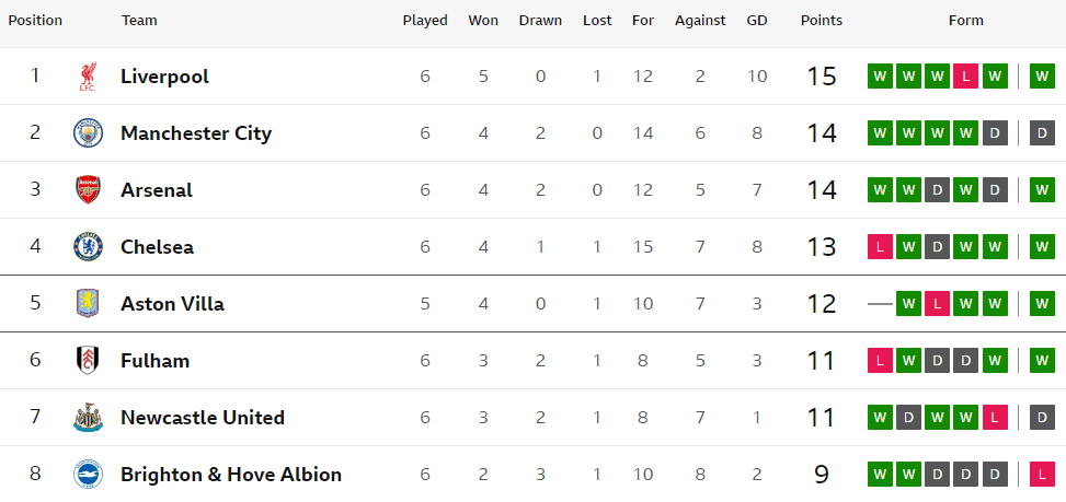 トップはリヴァプール。フォレストに敗けて、すでにタイトル争いから脱落したとかウソじゃんね。