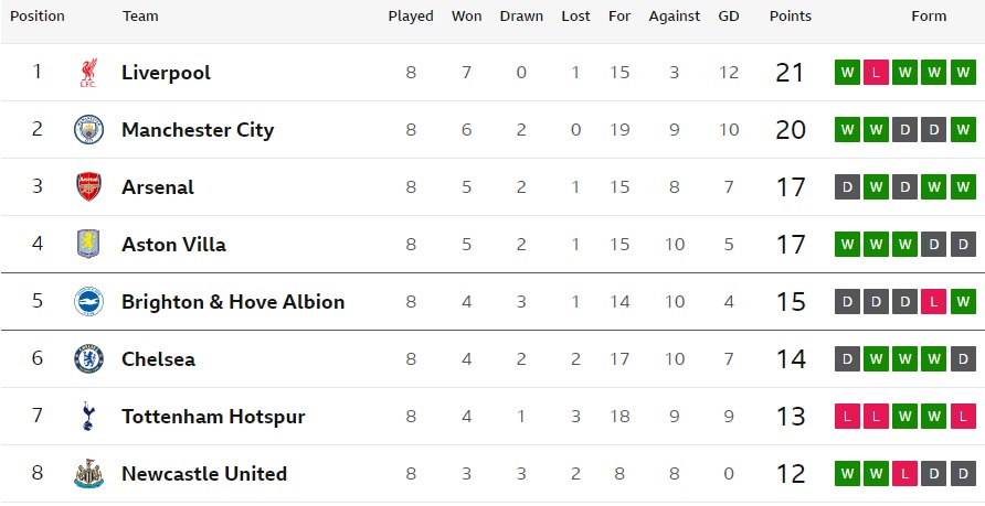 アーセナルは今回の結果、ポインツでヴィラに並ばれてしまった。GDで3位をキープ。つぎのリヴァプールとは4ポインツ差。次回勝っても順位は入れ替わらない。悔しい。